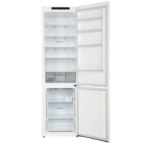 Холодильник LG GA-B509SQCL имеет две камеры. Дверцы открываются направо, но их можно навесить на другую сторону. Морозильная камера расположена снизу. За счет этого владелец получает удобный доступ к холодильной камере, не надо постоянно нагибаться, чтобы изучить ее содержимое.