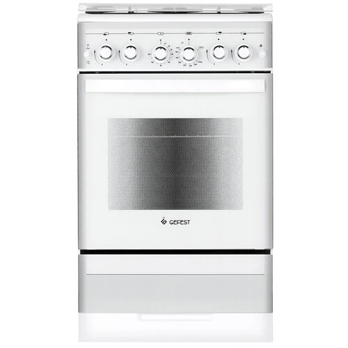 В нижней части GEFEST ПГ 5300-02 0040 находится духовка объемом 52 л с поддержкой гриля. Горелки варочной панели и духовки поддерживают электроподжиг, активация которого происходит при нажатии отдельной кнопки. Безопасность эксплуатации обусловливает поддержка газ-контроля. Эта функция прекращает подачу газа, когда пламя затухает. Для управления прибором на переднюю панель вынесены 6 поворотных ручек, 4 из которых позволяют настраивать интенсивность пламени горелок, а 2 обеспечивают управление духовкой.