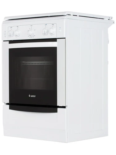 Газовая плита GEFEST 6100-02 0009 с металлическим корпусом классического белого цвета имеет четыре газовые конфорки, различающиеся рабочей мощностью, и 52-литровую духовку со встроенным грилем. Плита с шириной корпуса 60 см привлекает наличием всего необходимого для домашней кухни функционала и простотой управления. Она управляется с помощью поворотных переключателей на передней панели, где находится и кнопка включения электроподжига газа для конфорок и духовки.