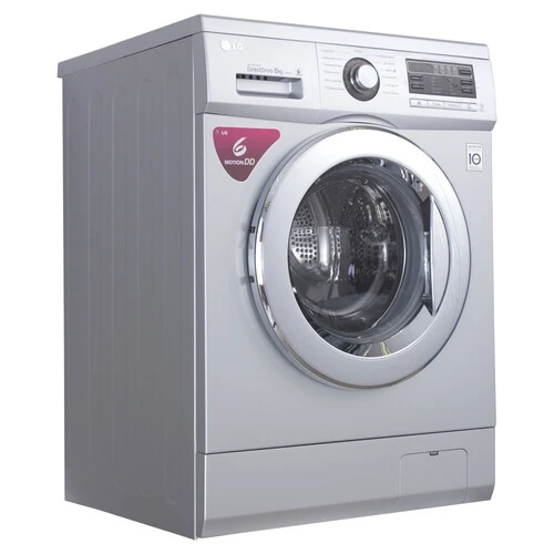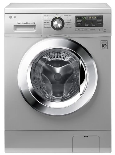 Отдельно стоящая стиральная машина с надежным прямым приводом LG F1296TD4. Цвет серебристый. Возможность погрузки белья до 8кг.