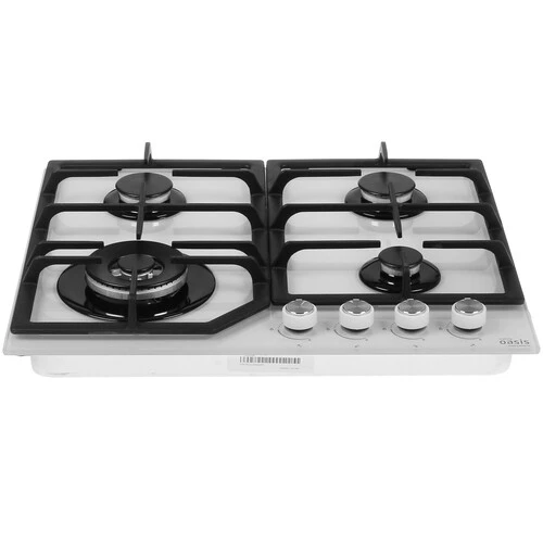 Газовая варочная поверхность making Oasis everywhere P-GWT (F) представлена в стильном исполнении: на панели из закаленного стекла белого цвета расположены 4 конфорки, съемные чугунные решетки и поворотные переключатели эргономичной формы. Особенности конструкции конфорок предупреждают затекание под них «убежавших» блюд, а в переключатели встроен механизм активации электроподжига. Это значительно облегчает пользование варочной поверхностью и делает уход за ней простым и быстрым.